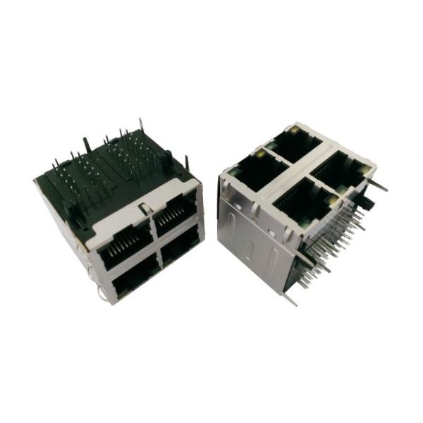 2x2 Quad RJ45 Jack Female PA46 Plastic Housing 20mΩ Contact Resistance Images |